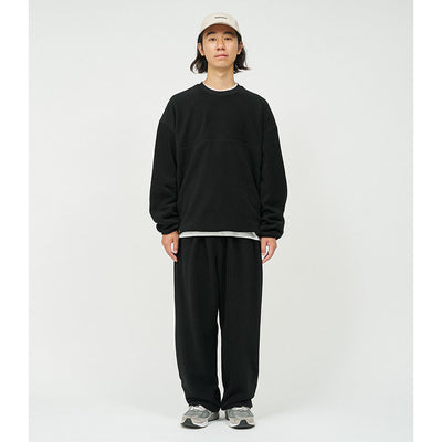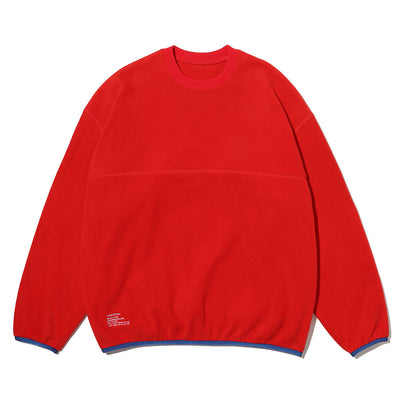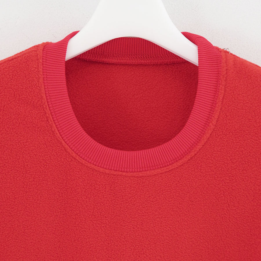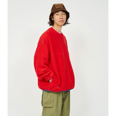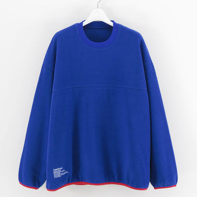 ソフトなマイクロフリース素材で作られたリラックスフィットのクルーネックプルオーバー。採用したポリエステル100%のポリエステル素材は、柔らかくクッションのような感触で快適な着心地を提供。袖口と裾には配色がアクセントになったストレッチパイピングを施し、寒風の侵入を防ぎつつ自然な丸みを帯びたシルエットになるように調整。暖かさと快適さを追求した一着です。